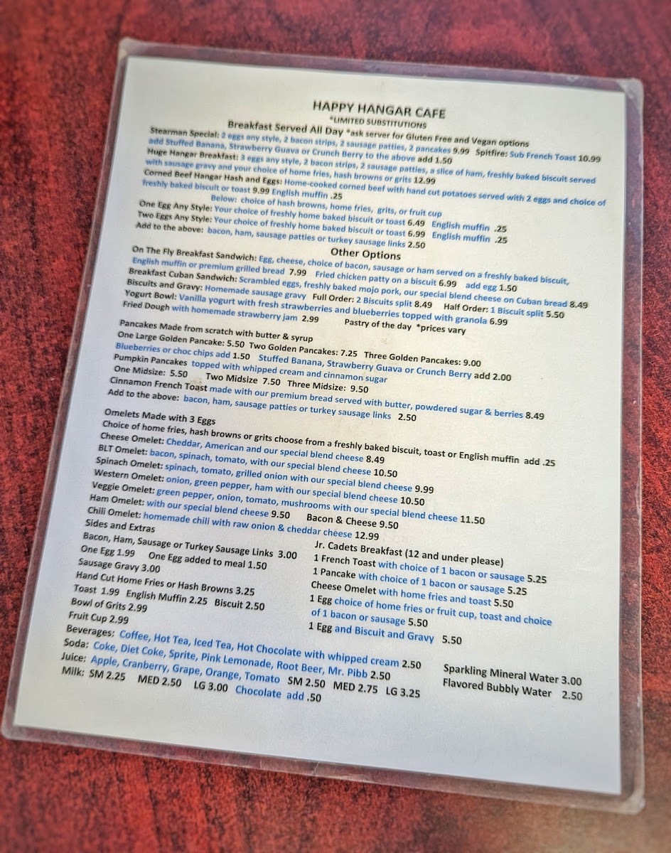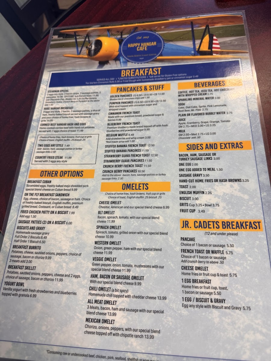 Welcome to The Happy Hangar Café, a delightful eatery located at 4241 Birdsong Blvd, Lutz, FL. This café offers an inviting atmosphere where comfort meets culinary delight. The menu is a celebration of breakfast classics, each dish crafted to elevate your morning experience.